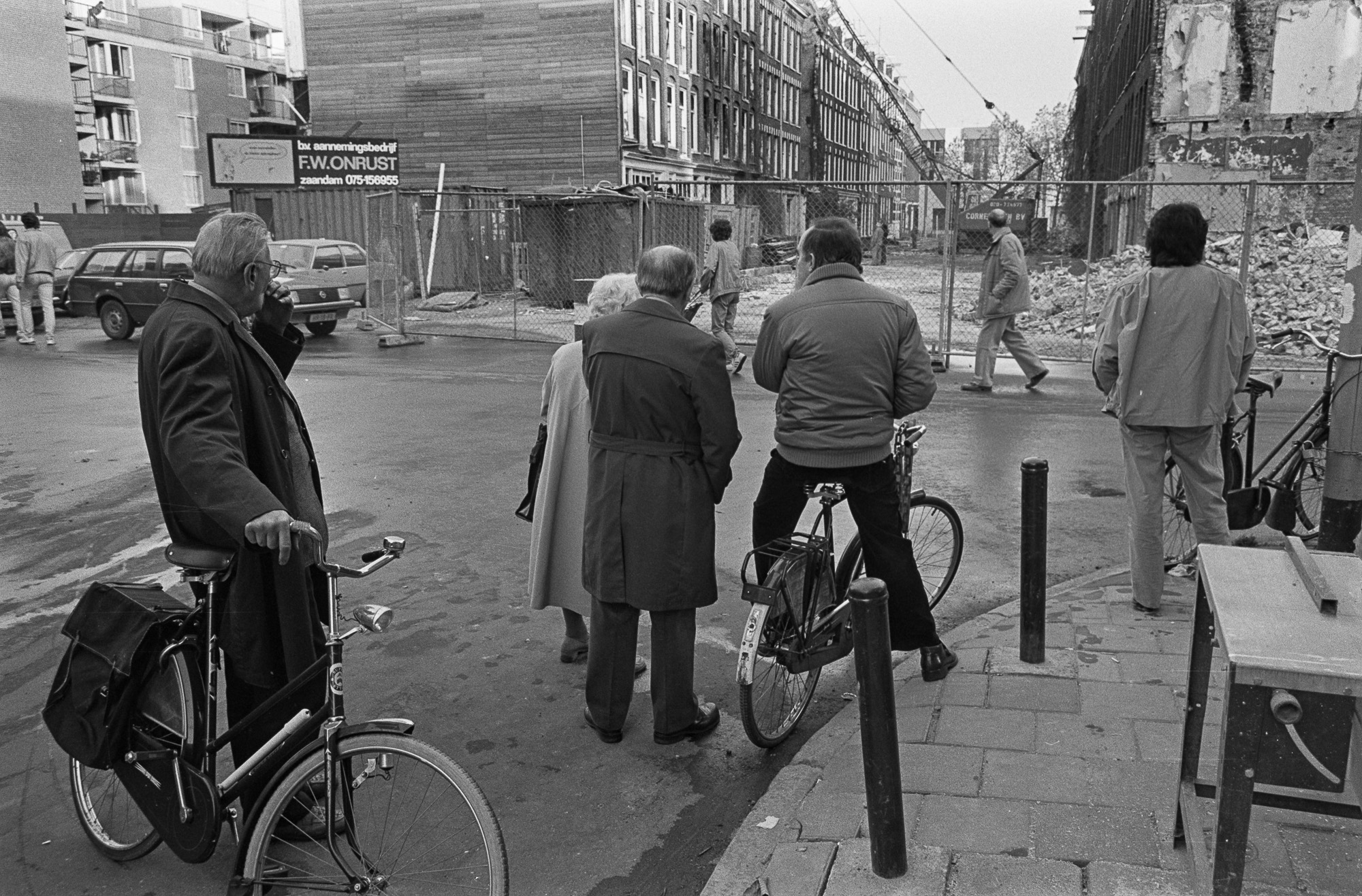 10 november 1984, Mensen kijken naar de sloopwerkzaamheden in de staatsliedenbuurt.