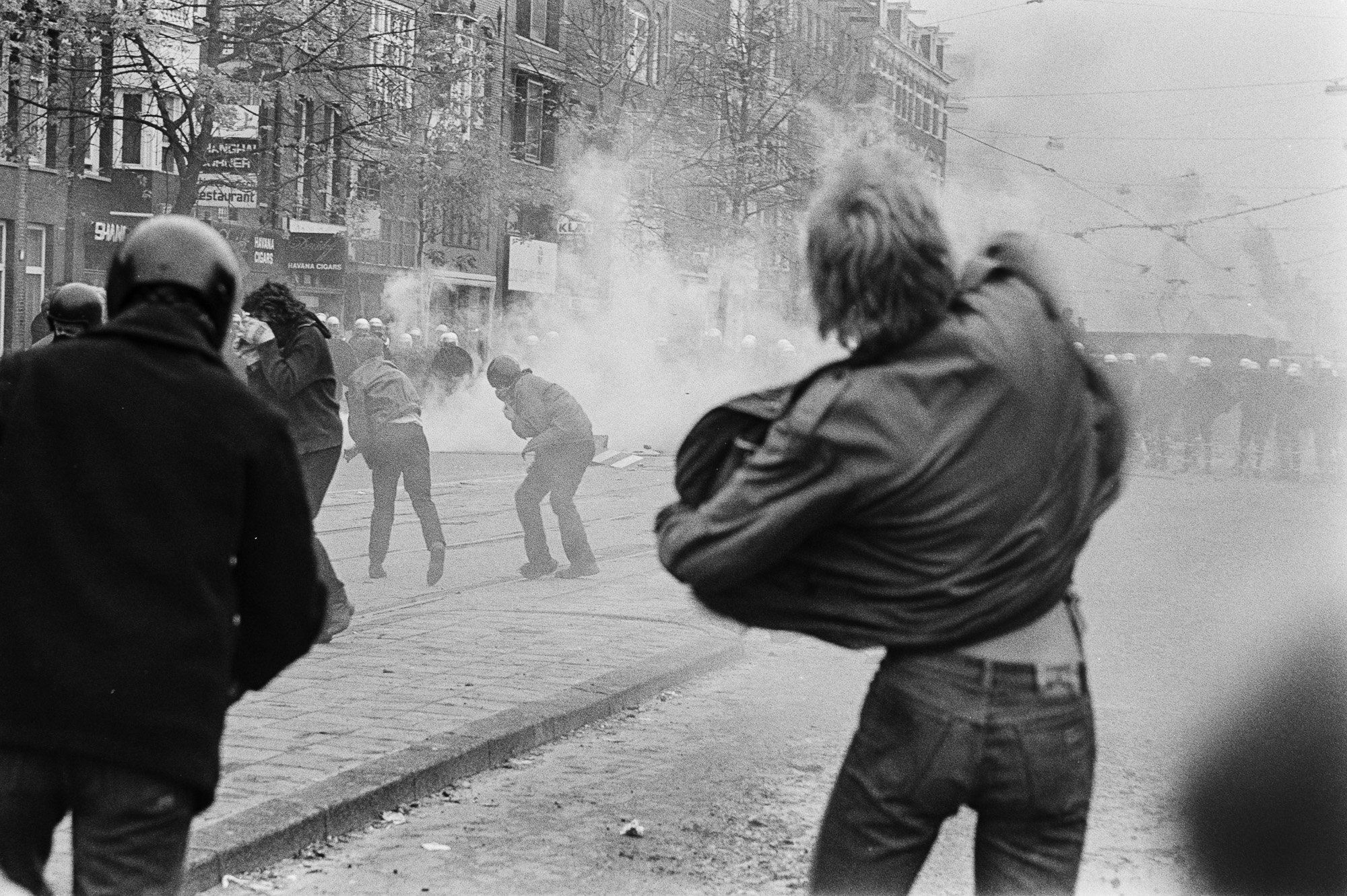 Amsterdam, 11 oktober 1982, Rellen tijdens de ontruiming van het gekraakte pand in de Jan Luijckenstraat.