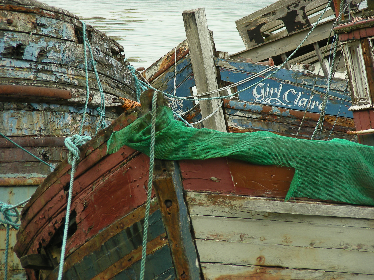 Schotland, 11 juni 2007, langzaam wegrottende houten vissersboten aan de noordkust van het eiland Mull.