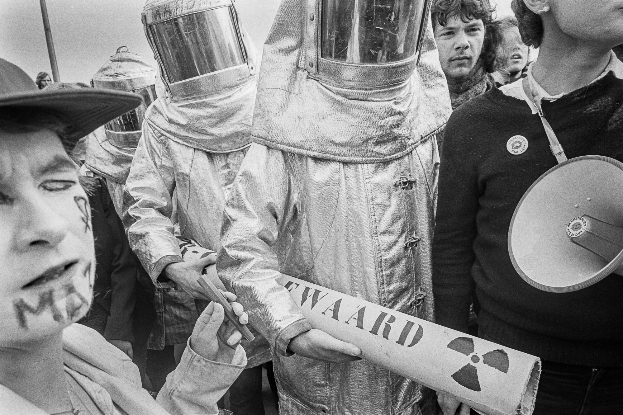 Dodewaard, 28 maart 1981, een demonstratie met een namaak transport van radioactief materiaal van Windscale naar Dodewaard.