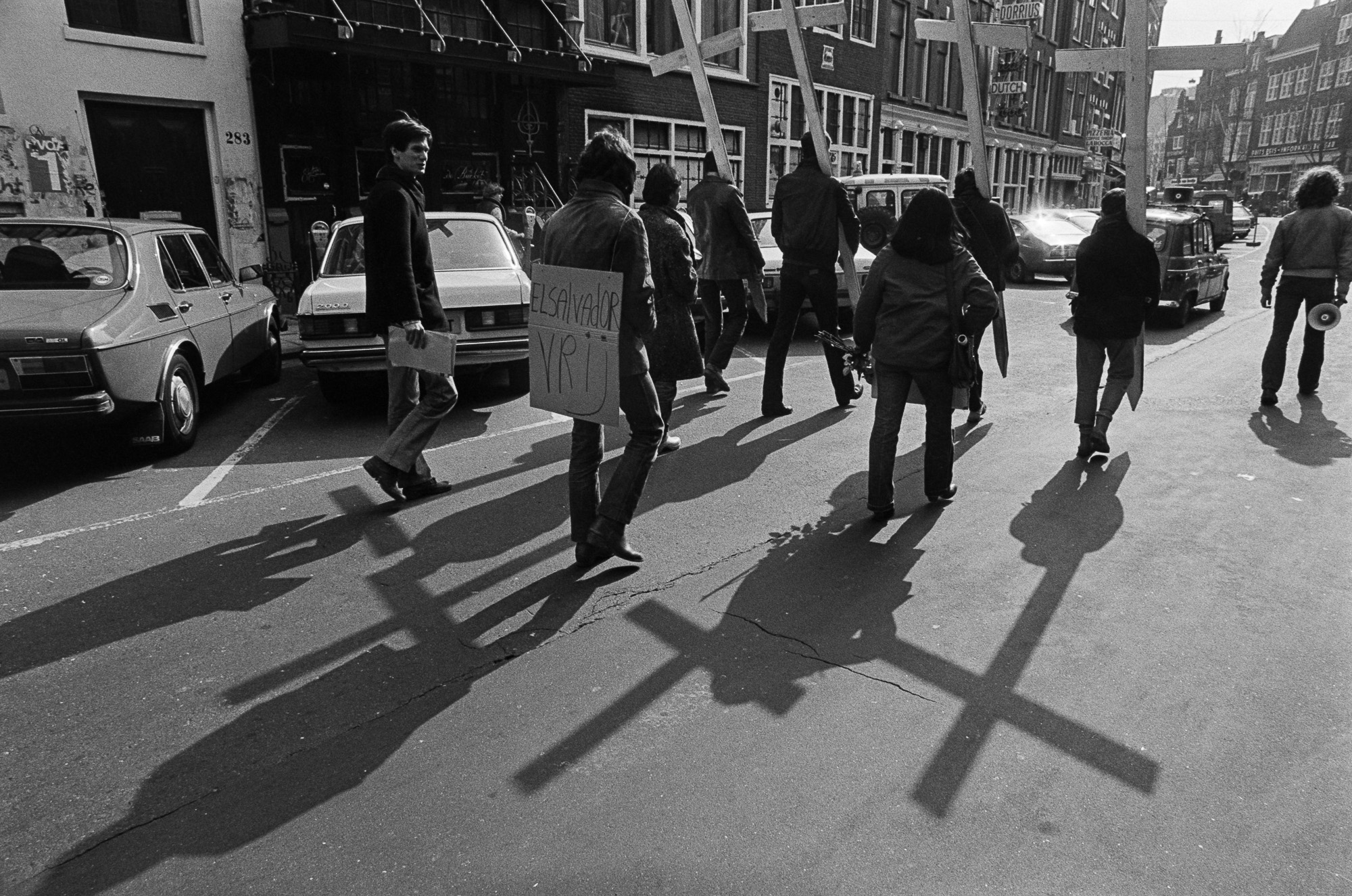 Amsterdam, 19 maart 1981. Protest bij de Amerikaanse ambassade in verband met de moord op vier journalisten in El Salvador.